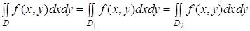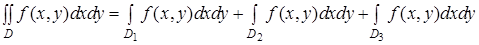 Ця властивість називається адитивністю подвійного інтеграла і справедлива для довільного скінченого числа областей, які складають область і не мають спільних внутрішніх точок.