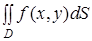 за областю . Нехай - найбільший з діаметрів областей . Якщо інтегральна сума (5) при має скінченну границю, яка не залежить ні від способу розбиття області на частинні області , ні від вибору точок в них, то ця границя називається подвійним інтегралом і позначається одним із таких символів:
