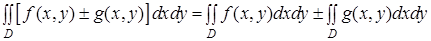 Подвійний інтеграл від суми двох функцій дорівнює сумі подвійних інтегралів від цих функцій: