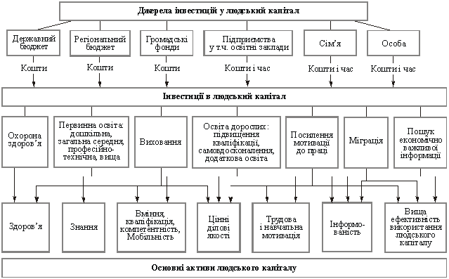 Рис.1.1 Формування основних активів людського капіталу за рахунок інвестицій