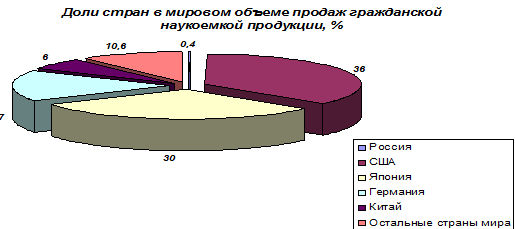 Рис. 2 - Доля России в мировых продажах наукоемкой продукции