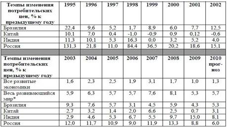 Сравнительная характеристика уровня инфляции в индустриальных и развивающихся странах