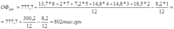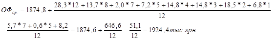 - среднегодовая стоимость ОФ - 1924,4 тыс.грн.