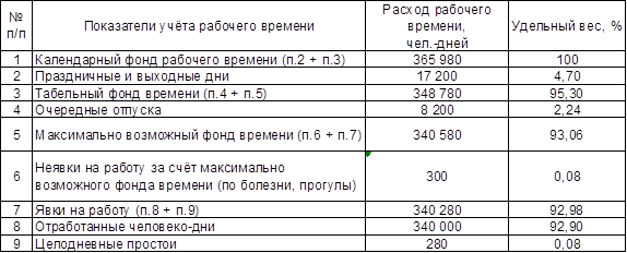 3.3 Показатели учёта рабочего времени и его использования