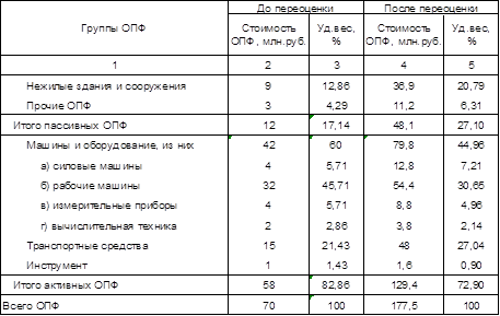 4.1 Видовая структура основных фондов и технологическая структура основных производственных фондов