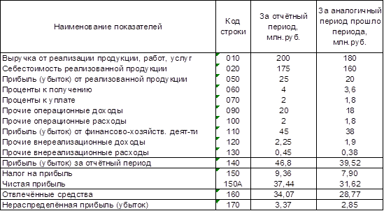 А) Прибыль от реализованной продукции, работ, услуг в отчётном периоде увеличилась с 20 до 25 млн.руб.