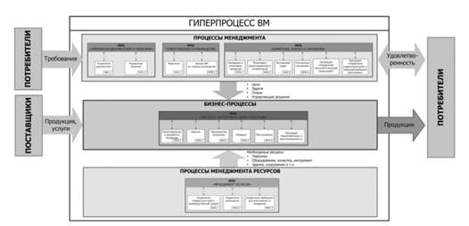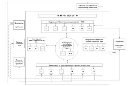 Уникальность НД ВМ заключается в том, что она представлена в виде шести системообразующих процессов: гиперпроцесса (ГВМ) и пяти макропроцессов (МП).