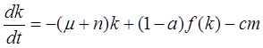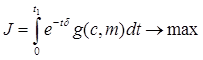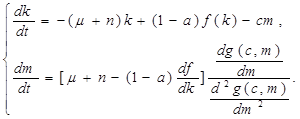 Заметим, что потребление с(t) является прогнозируемой величиной, которую мы находим по методу множественной регрессии. Принцип максимума в данной задаче позволяет для оптимального процесса (k(t),m(t)) получить систему дифференциальных уравнений (7).