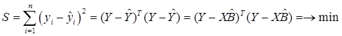 Согласно МНК искомые оценки минимизируют сумму квадратов отклонений , т.е.