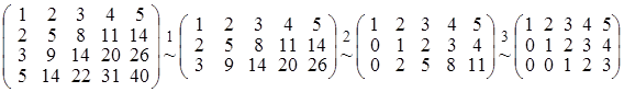 Відзначаючи, що третій і четвертий рядки матриці пропорційні другому рядку, укладаємо, що rangА