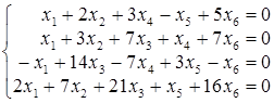 = 6 – 2 = 4. Для знаходження базисних векторів простору розв’язків надамо вільним невідомим х