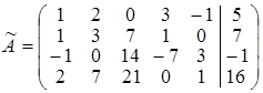 Розширена матриця системи рівнянь має вигляд: , причому до вертикальної риски записана головна матриця системи, а після вертикальної риски – стовпець вільних членів. Перетворюючи матрицю аналогічно до того, як перетворювалася матриця А