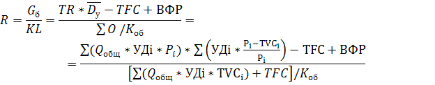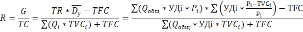 R =0,169, т.е. уровень рентабельности за счет небольшого роста постоянных затрат уменьшился бы на 0,1%.