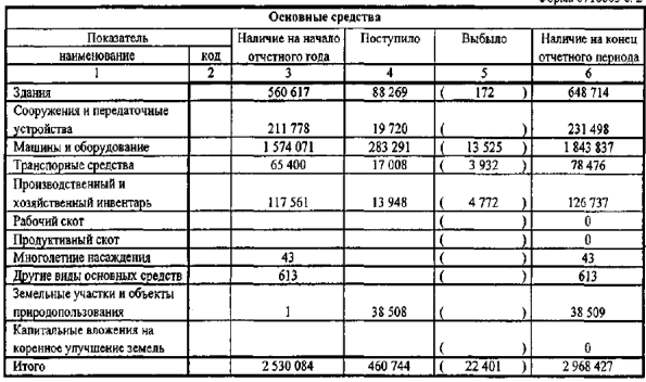 – суммарная стоимость выбывших в течение года основных средств;