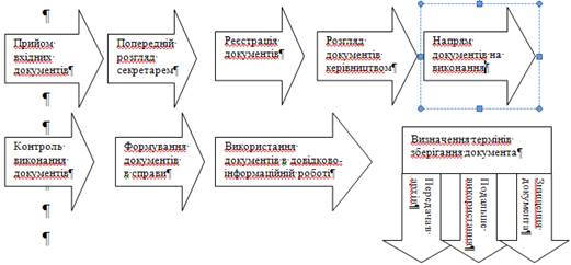 Вхідний документопотік будь-якої організації складається з: документів вищестоящих організацій (органів влади і управління, центральних апаратів міністерств і ін.). До складу цих документів входять директивні вказівки, нормативні і методичні акти, які є підставою для керівників в організації виробничою, управлінською, технічною, економічною, соціальною і іншій діяльності.
