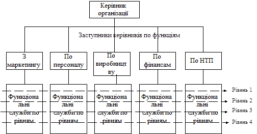 Функціональну організаційну структуру іноді називають традиційною або класичною, оскільки вона була першою структурою, яку вивчили і опрацювали. Функціональна схема організаційної діяльності широко застосовується в компаніях середнього розміру, а також в організації нашого прикладу - Центру ”Торгпреса”. Функціональна департаменталізація - це процес поділу організації на окремі елементи, кожний з яких має свою чітко визначену, конкретну задачу і обов'язки [19, с. 335]. В принципі, утворення функціональної структури зводиться до групування персоналу по тим задачам, які вони виконують. Тому дуже важливо і необхідно правильно зрозуміти функцію, ії взаємозв’язки з іншими функціями, з якими вона може бути згрупована або від яких вона повинна бути відокремлена. Вже потім вся система інтегрується і віддається в управління одному підрозділу.