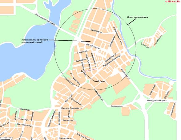 4. Зона заражения при аварии на Молочном заводе