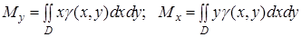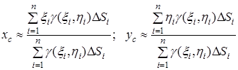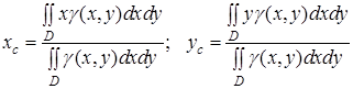 Щоб знайти точні значення координат, перейдемо в цих формулах до границі при . Тоді інтегральні суми перейдуть у подвійні інтеграли і координати центра маси пластини визначатимуться формулами