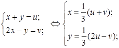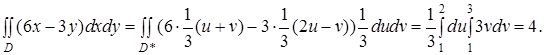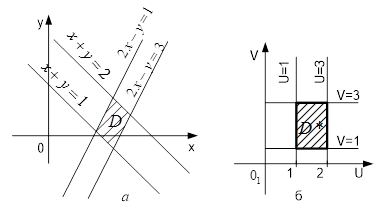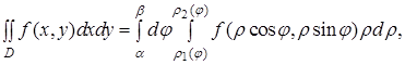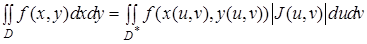 Таким чином, виконуючи заміну змінних в інтегралі за формулами (1), ми маємо елемент площі в координатах замінити елементом площі в координатах і стару область інтегрування замінити відповідною їй областю .