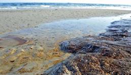 На поверхности залива образовалось огромное нефтяное пятно, распространение которого не удалось остановить заградительными сооружениями и методом выжигания.