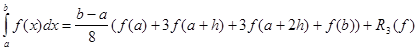 Якщо в формулі Ньютона-Котеса взяти n = 3, тобто функцію f(x) замінити інтерполяційним багаточленом третього степеня, побудованим за значення функції f(x) у точках x0=a, x1=a+h, x2=a+2h, x3=b, h=(b-a )/3. то одержимо таку квадратурну формулу: