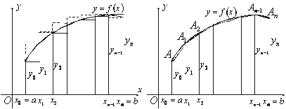 Розіб’ємо відрізок на n рівних частин точками , i=0,1,…n-1, довжина кожної з яких дорівнює . Через позначимо значення функції в точках і складемо суми