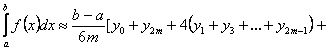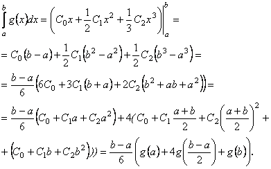 Якщо на кожному з інтегралів для проміжків функцію замінимо параболами , що проходять через точки ,то одержимо