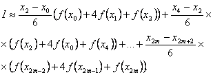 Формула (4) називається формулою парабол або Сімпсона. Доведено, що похибка обчислень за формулою Сімпсона є такою:
