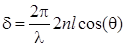 Если наклонить одно из зеркал, то сравнение облегчается, поскольку в этом случае плоские волны, выделенные из пучка, пересекаются и образуют систему линейных интерференционных полос, интенсивность которых в плоскости наблюдения дается выражением: