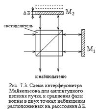 Методы амплитудного деления пучков (например, с помощью интерферометра Майкельсона) позволяют сравнить фазы плоской волны в различных точках вдоль направления распространения рис. 7.3.
