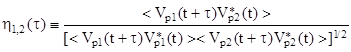 Комплексная степень когерентности h(t), устанавливающая связь между электрическими полями Vp1