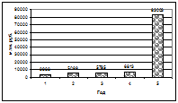 71507 (млрд. руб.) * 100 (%) / 4005 (млн. руб.) = 1785,44%, что говорит о значительном увеличении расходов средств федерального фонда обязательного медицинского страхования за 5 исследуемых лет. Из таблицы, очевидно, что резкое увеличение расходов средств в ФФОМС произошло в 2005 году. Если считать цепной темп роста, то в 2002 году он составил 126,87% по отношению к 2001 году, в 2003 году будет равен 114,29% по отношению к 2002 году, в 2004 году – 116,45% по отношению к 2003 году, а в 2005 году – 1057,48% по отношению к 2004 году. Из данных расчетов следует, что расходы средств федерального фонда обязательного медицинского страхования значительно увеличились в 2005 году (рис. 2).