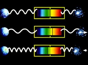 Когда, вращаясь по орбите, звезда (или любой другой излучающий объект) приближается к нам, то длины волн ее излучения уменьшаются, то есть смещаются в синюю область спектра, а когда удаляется – длины волн увеличиваются, смещаясь в красную область спектра. Это явление называется эффектом Доплера, оно было открыто и обосновано астрономом К. Доплером в 1842 году.