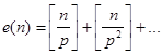 Силовские p-подгруппы симметрических групп. Как мы знаем, Каков максимальный показатель e(n), при котором делит n!? В последовательности 1,2,…,n кратными p будут числа p,2p,…,kp, где , поэтому . Так как , то Удобно разложить n по основанию p: , тогда
