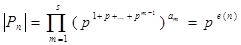 Теперь пусть n произвольно. Разобьём символы 1,...,n на одноэлементных, р-элементных и т.д. отрезков. На каждом из этих отрезков рассмотрим симметрическую группу – она будет некоторой степени , а в ней возьмём силовскую p-подгруппу, построенную как выше. Так как эти подгруппы действуют на непересекающихся множествах, то их порождение является их прямым произведением, а потому имеет порядок