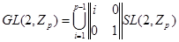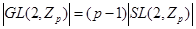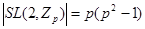 Пусть - группа с определителем 1 над полем из р элементов. Из разложения