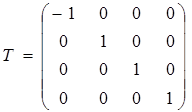 - нулі ставлять у другому рядку і другому стовпці матриці перетворення, за винятком одиниці на головній діагоналі. Повна матриця задається виразом