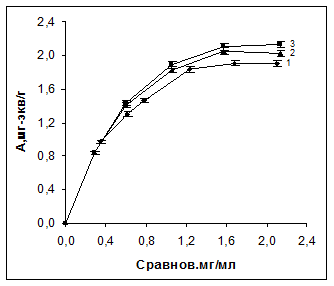 2.4.1 Изучение зависимости сорбции палладия на волокнах ЦМ-А2, Мтилон-Т и ВАГ от концентрации металла в равновесном растворе