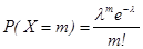 Дискретная случайная величина Х имеет закон распределение Пуассона, если она принимает значения 0, 1, 2, …m,… (бесконечное, но счётное множество значений) с вероятностями