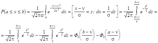 Вероятность того, что значения нормальной случайной величины лежат в интервале (a, b) определяется следующим выражением:.