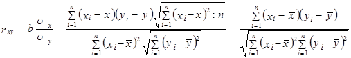 Вычислим на основе итоговой строки табл1. параметр парной линейной корреляции: