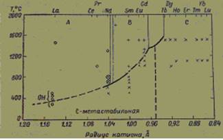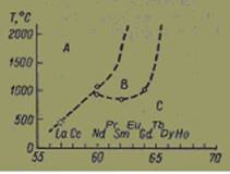 Рис. 7. Диаграмма фазовых превращений в оксидах РЗЭ.