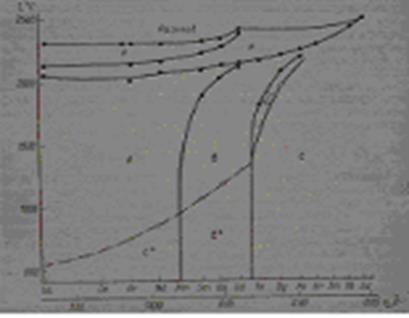 в зависимости от состава образующегося твердого раствора, а следовательно и к изменению температур фазовых переходов.