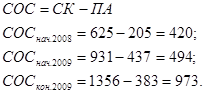 Коэффициент маневренности. Проводим расчет данного коэффициента, при этом сначала выясняем значения СК, ПА и СОС.