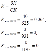 Также мы видим, что на конец 2009 года у предприятия нет никаких долгов по займам и кредитам.