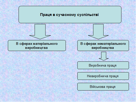 В сучасному суспільстві працю можна поділити на працю в сферах матеріального і нематеріального виробництва (рис. 1).
