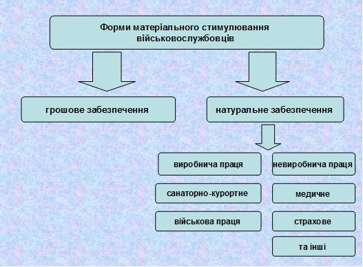 Матеріальне стимулювання забезпечує матеріальну зацікавленість в результаті праці, активізацію діяльності військовослужбовців, що в кінцевому результаті має добрий вплив на підвищення бойової готовності Збройних Сил України.
