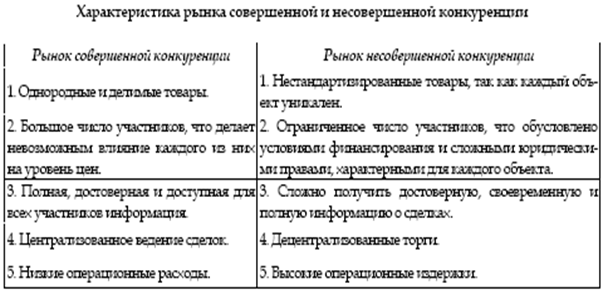 За последние годы рынок недвижимости повысил свою активность с помощью действия компаний, специализирующихся на операциях с недвижимостью, финансовых организаций и правительственных агентств, оценщиков, юристов. Тем не менее, его нельзя отнести к рынку совершенной конкуренции вследствие существенных особенностей функционирования, обусловленных такими факторами, как: