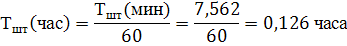 – норма штучного времени на выполнение операции 7,562 (берется из таблицы 1);
