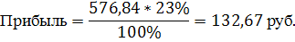 Согласно задания, прибыль составляет 23% от полной себестоимости.